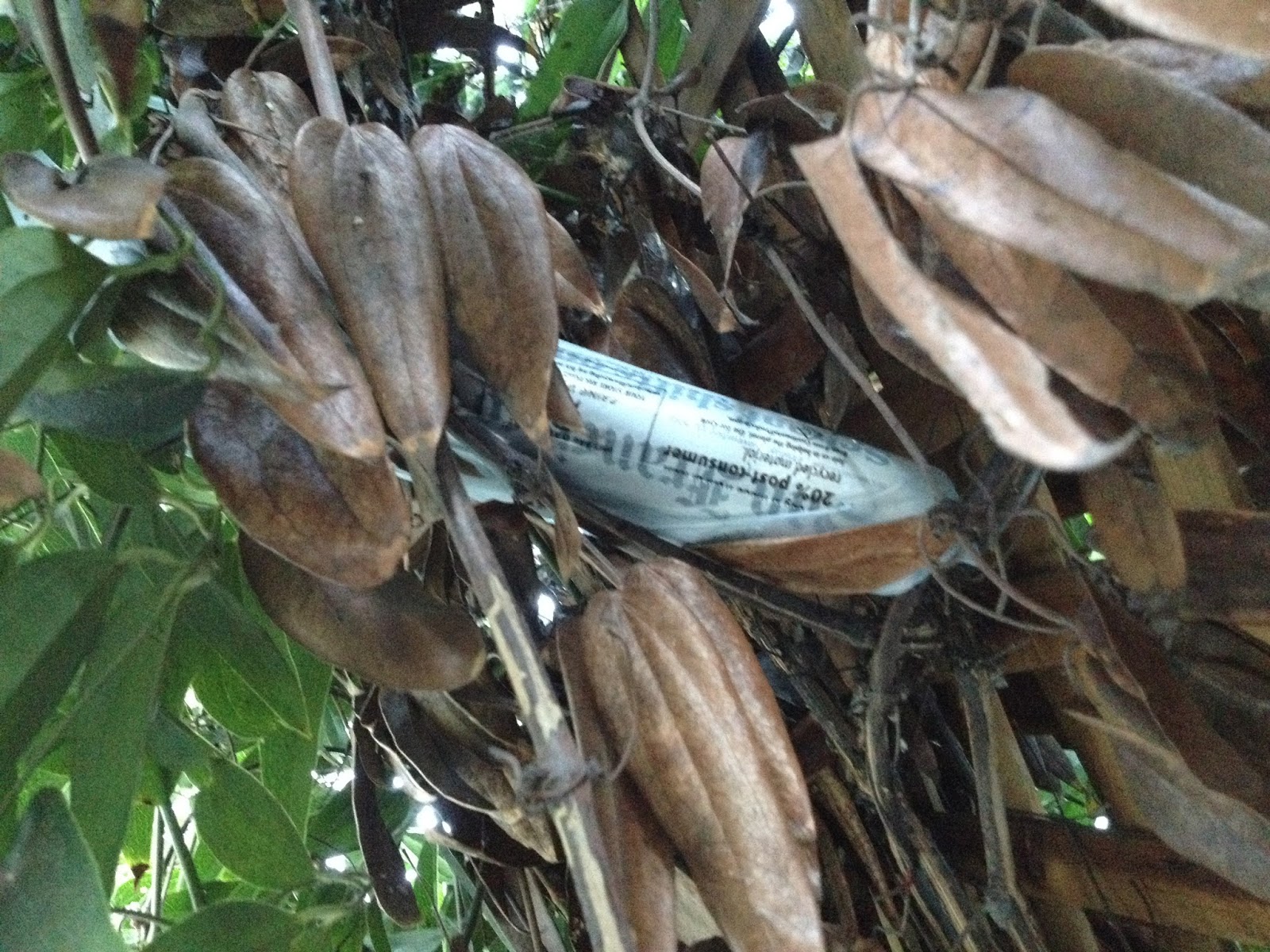 I used to throw the paper over the bushes. But it has lately become so slight that it gets stuck in the bushes.